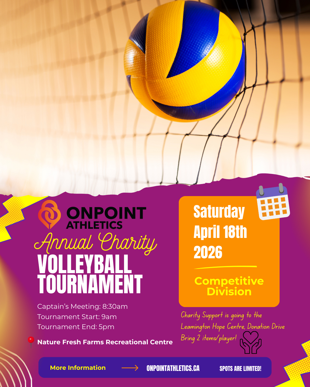Annual Charity Volleyball Tournament powered by OnPoint Athletics – COMPETITIVE DIVISION – Saturday, April 18th